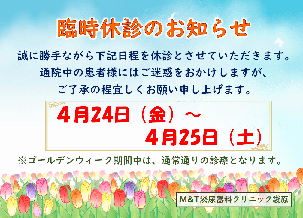 2026-4【M&T泌尿器科クリニック袋原】4月臨時休診日のお知らせ
